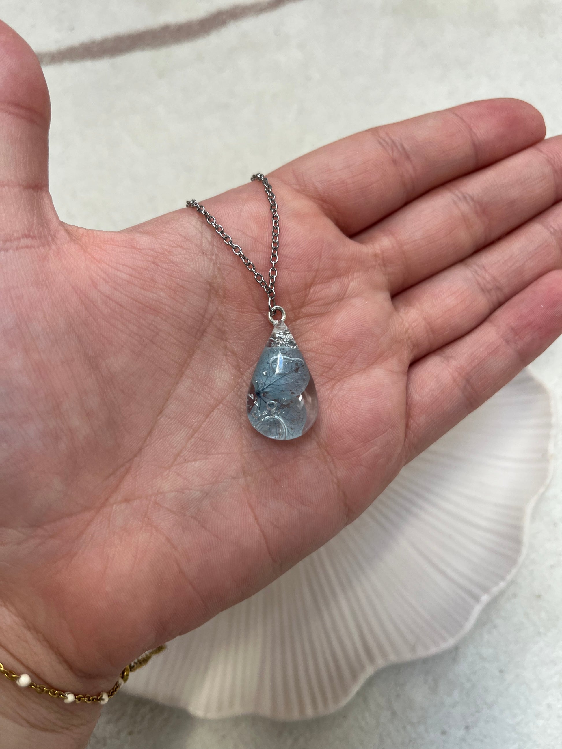 Collier fleur séchée bleu clair
