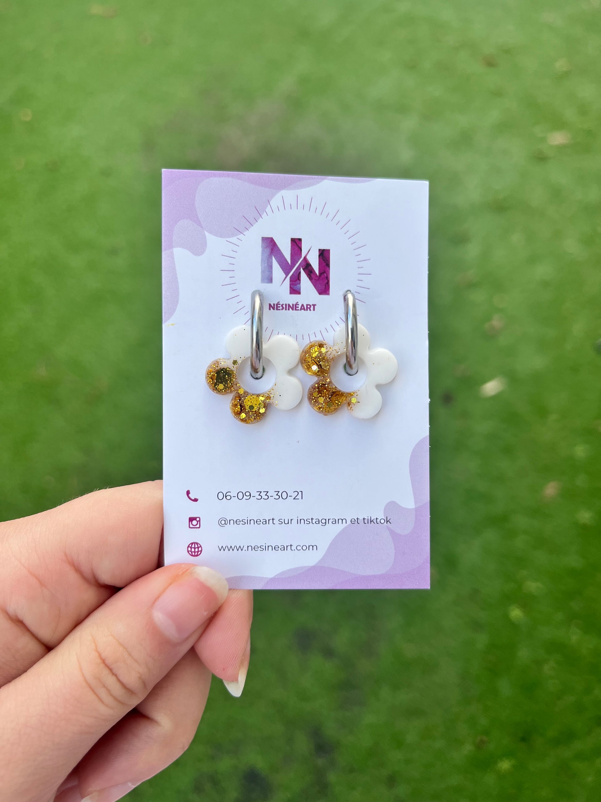Pampilles fleur blanc et paillettes pour boucle d’oreille modèle unique