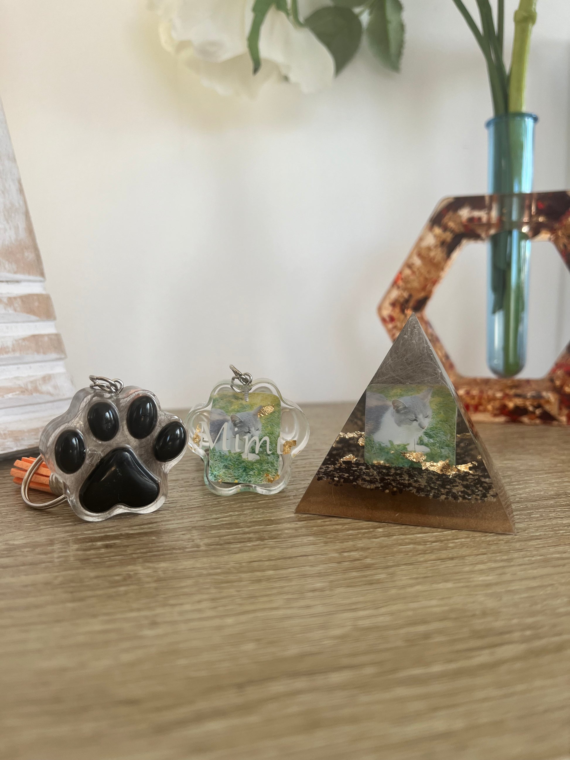 Pyramide à personnalisée petit format, possibilité de choisir les couleurs et incrustation à l’intérieur (photos, objets, figurines, fleurs etc..)