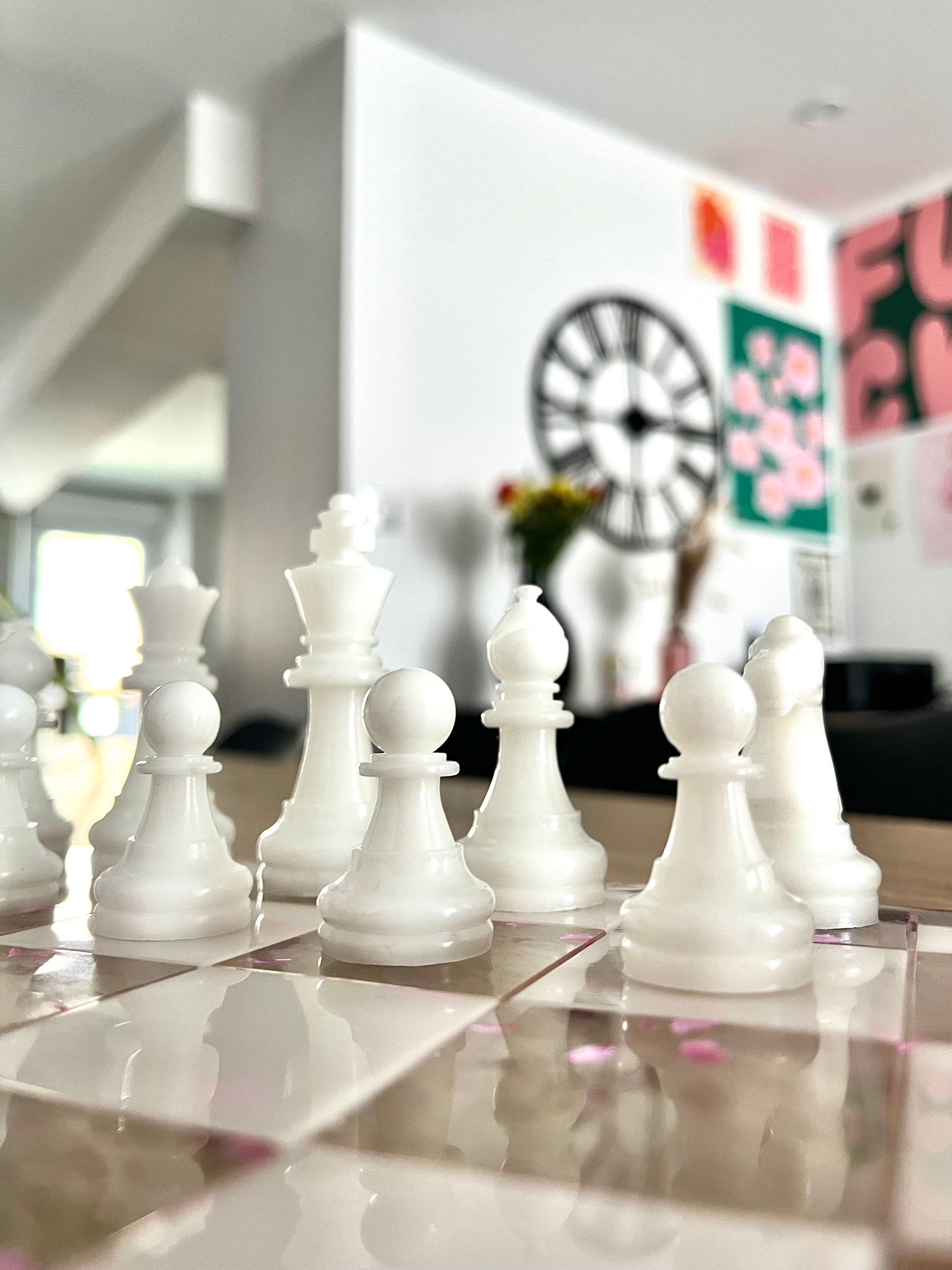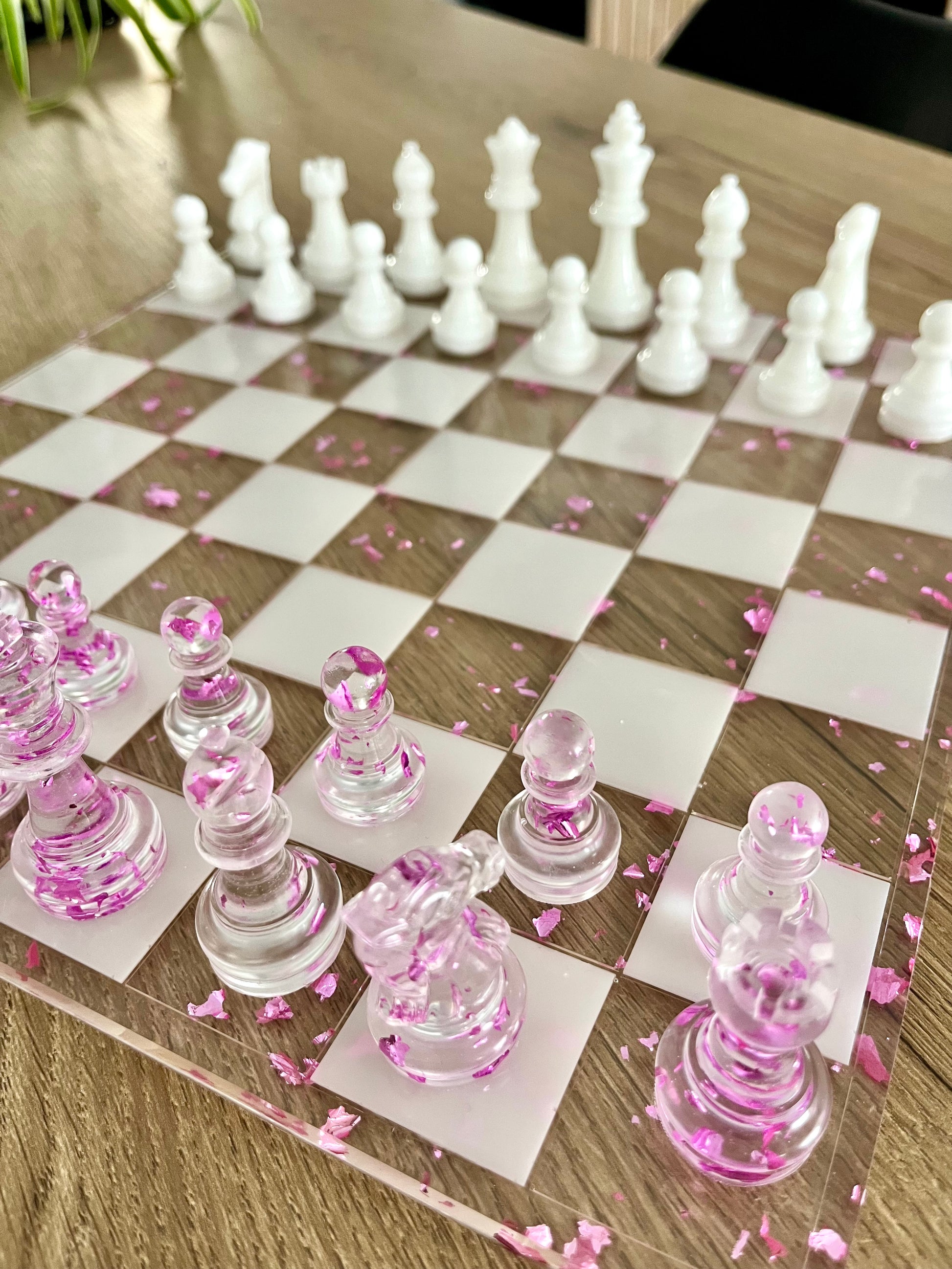Jeu d’échec transparent blanc et violet